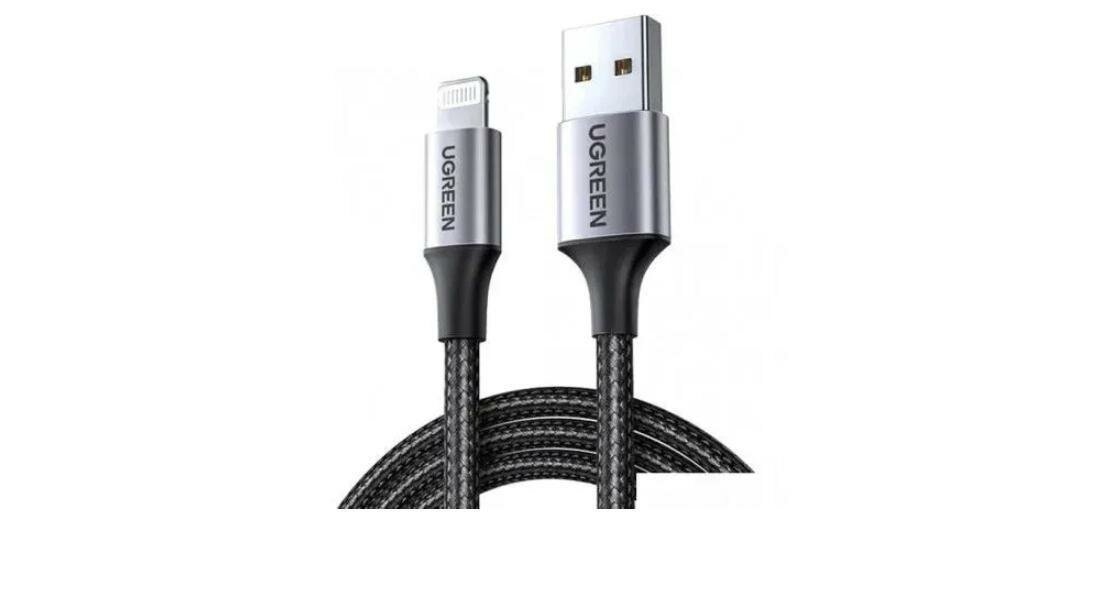 Кабель UGreen US199 USB 2.0 - Lightning, 1.5 м, 1 шт, черно-серый