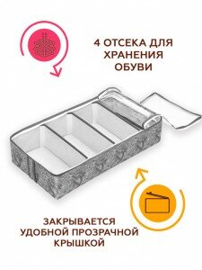 Органайзер для обуви на 4 бокса Grey Flower интересное: