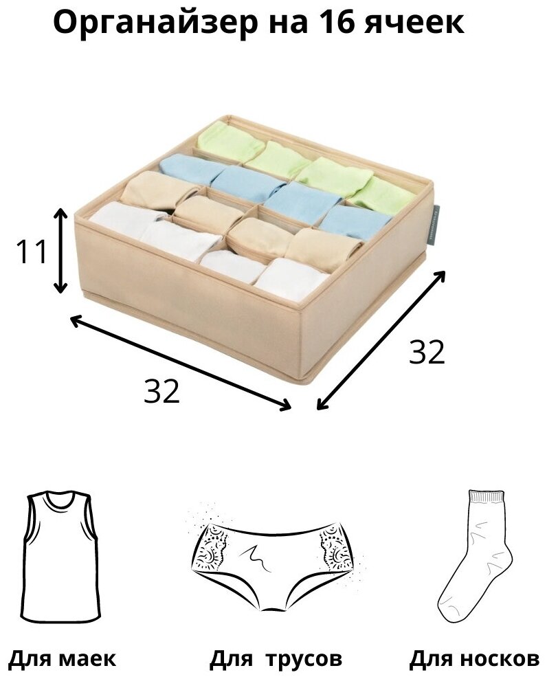 Купить Органайзер 32х32х11 см, 16 ячеек, Каир