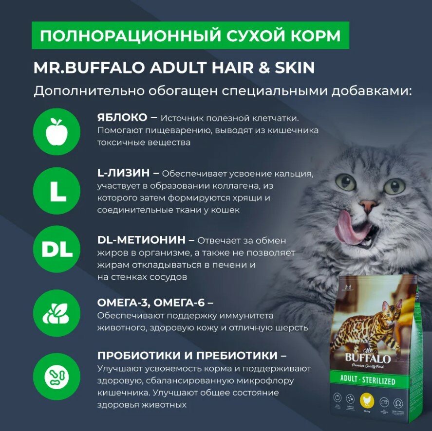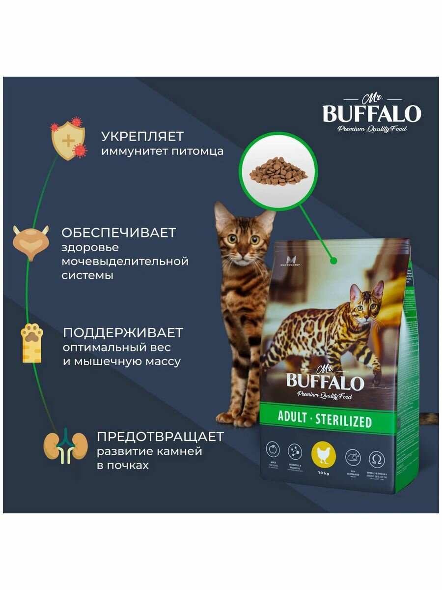 Mr.Buffalo ADULT STERILIZED корм сухой для кошек Курица 10кг