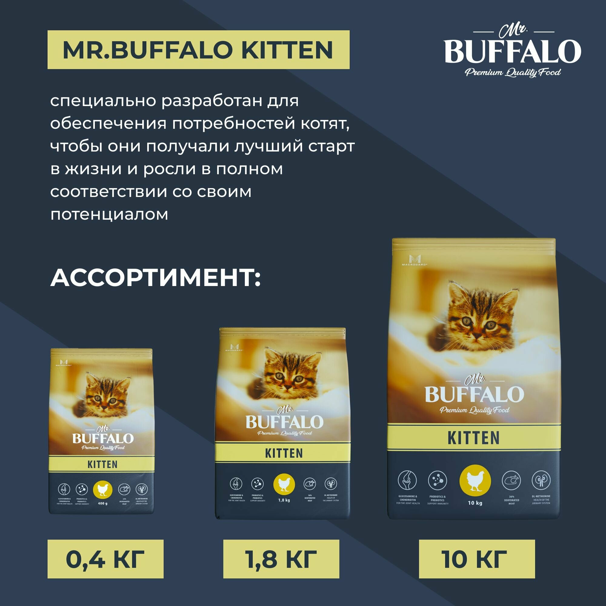 MR.BUFFALO KITTEN 10 кг сухой корм для котят курица 1 шт