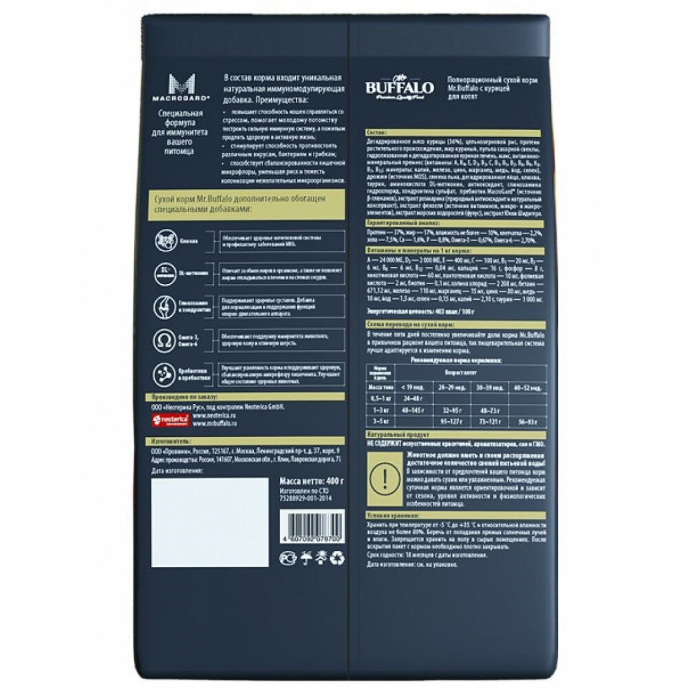 Ниже Вы можете прочитать отзывы на Сухой корм Mr.Buffalo KITTEN для котят с курицей 10кг, ознакомится с подробными характеристиками, посмотреть интересные обзоры и фотографии на Сухой корм Mr.Buffalo KITTEN для котят с курицей 10кг.