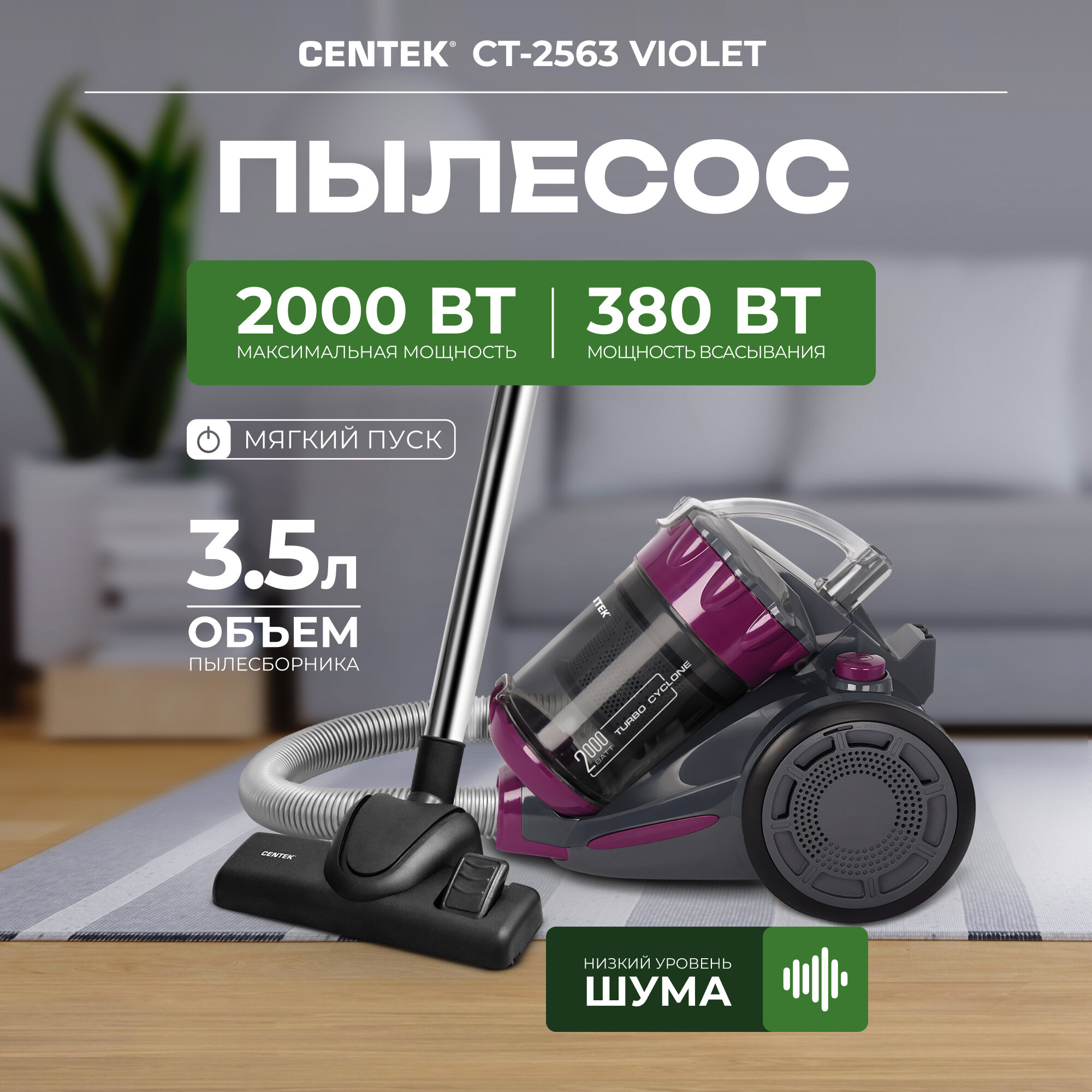 Пылесос Centek Ct-2563, 2000/380 Вт, 3.5 л, мультициклон, фиолетовый Centek 9899063