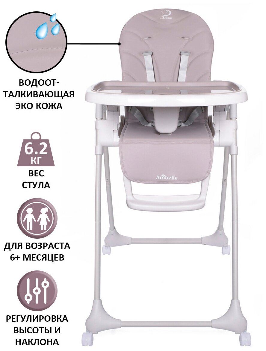 Стульчик детский Jetem Anibelle, с колесами и стопором, 6-36 месяцев, бежевый