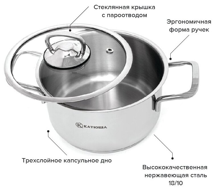 Кастрюля катюша 100-20-0 2.7 л (серебристый)
