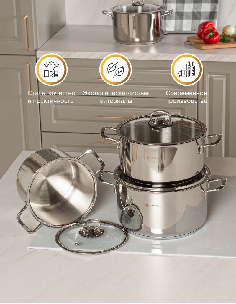 | Плюсы: | Хорошая стальная кастрюля,не первая от Катюши |