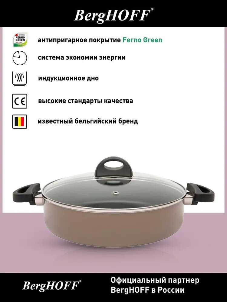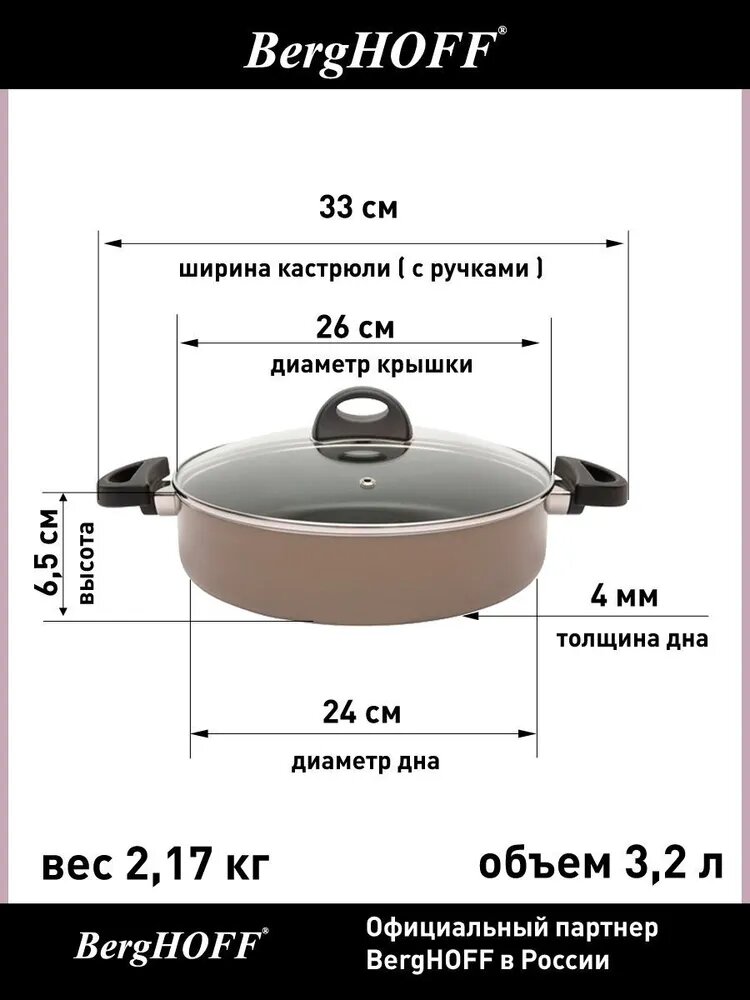 СохранитьСотейник с двумя ручками и крышкой 26см 3,2л BergHOFF Eclipse (коричневый) интересное: