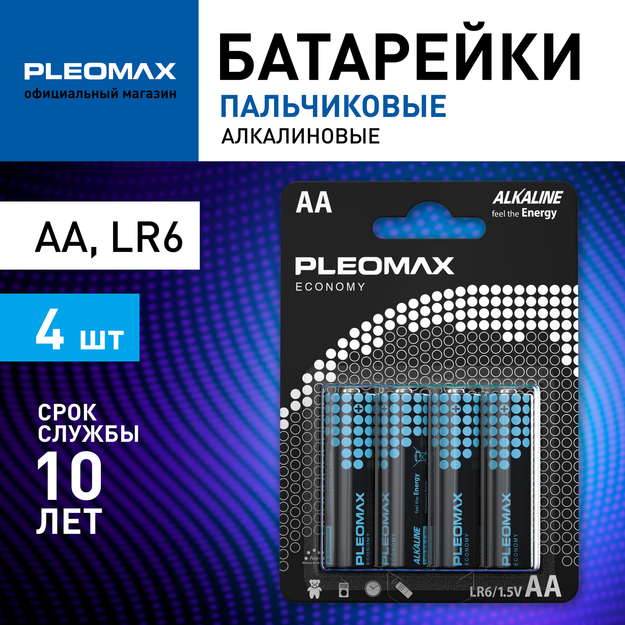 Батарейки щелочные пальчиковые АА Pleomax LR6-4BL Economy Alkaline 4 шт. интересное:
