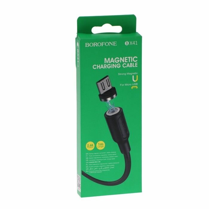 Купить Кабель Borofone BX41, microUSB - USB, магнитный, 2.4 А, 1 м, PVC оплётка, чёрный