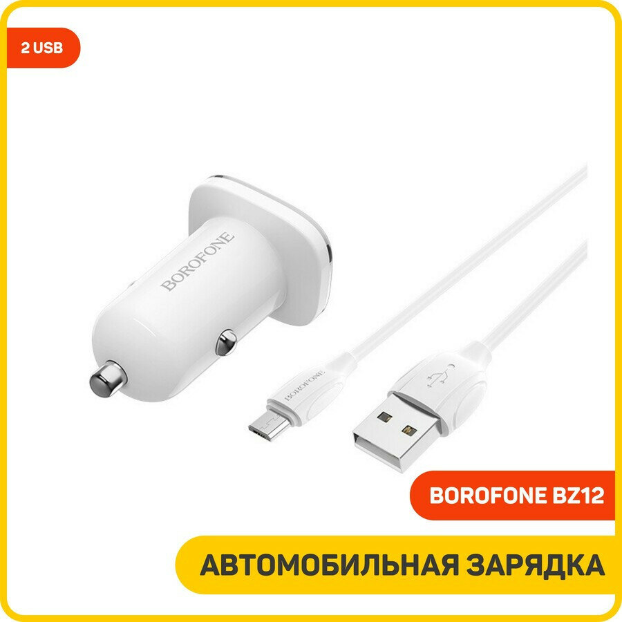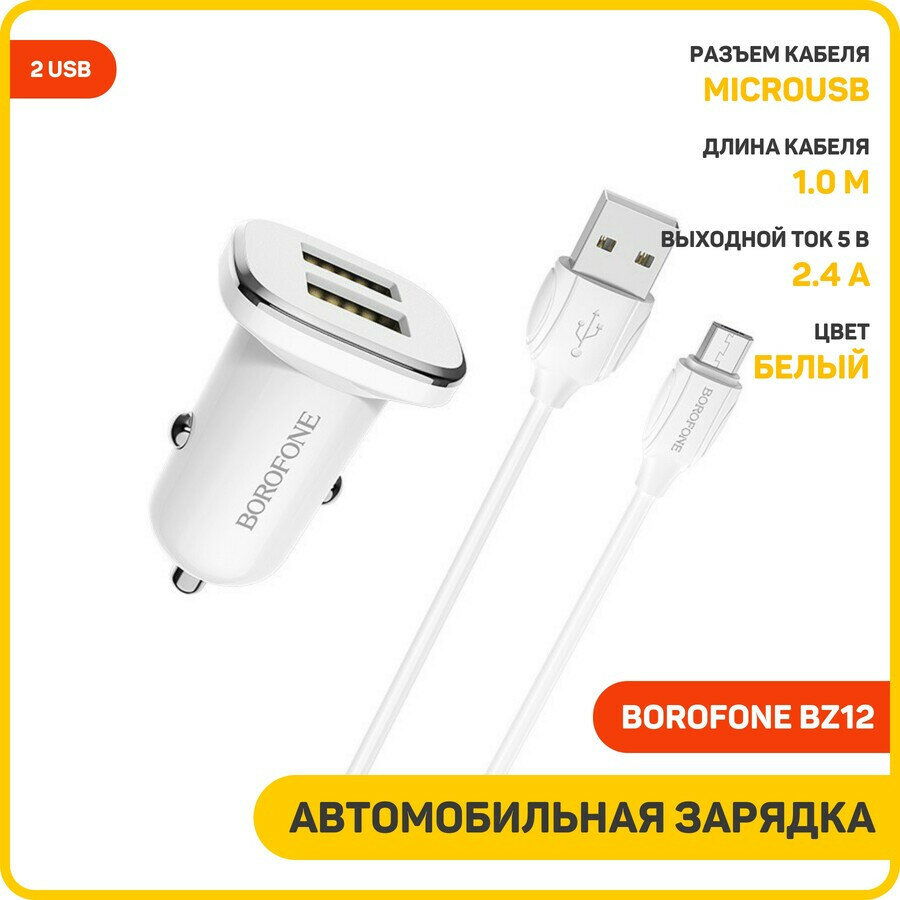 Купить Автомобильное зарядное устройство Borofone BZ12 + кабель micro-USB, белый