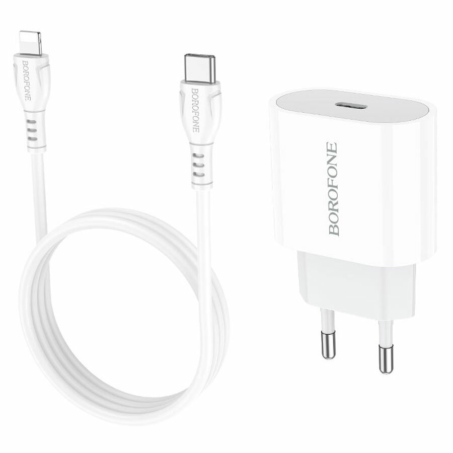 Сетевое зарядное устройство Borofone Ba61a, Type-C, 2.1 А, кабель Type-C - Lightning, белый Borofone