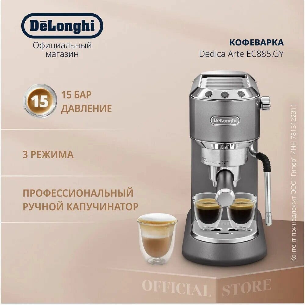 Купить Кофеварка рожковая DeLonghi Dedica EC 885.GY