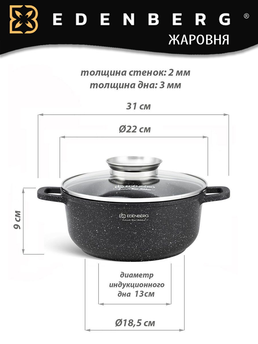 Казан с крышкой Edenberg EB-8117 3.6 л, 22 см