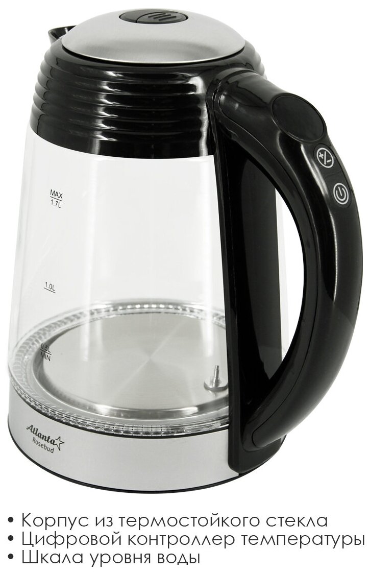 Atlanta Чайник стеклянный электрический ATH-2535 black