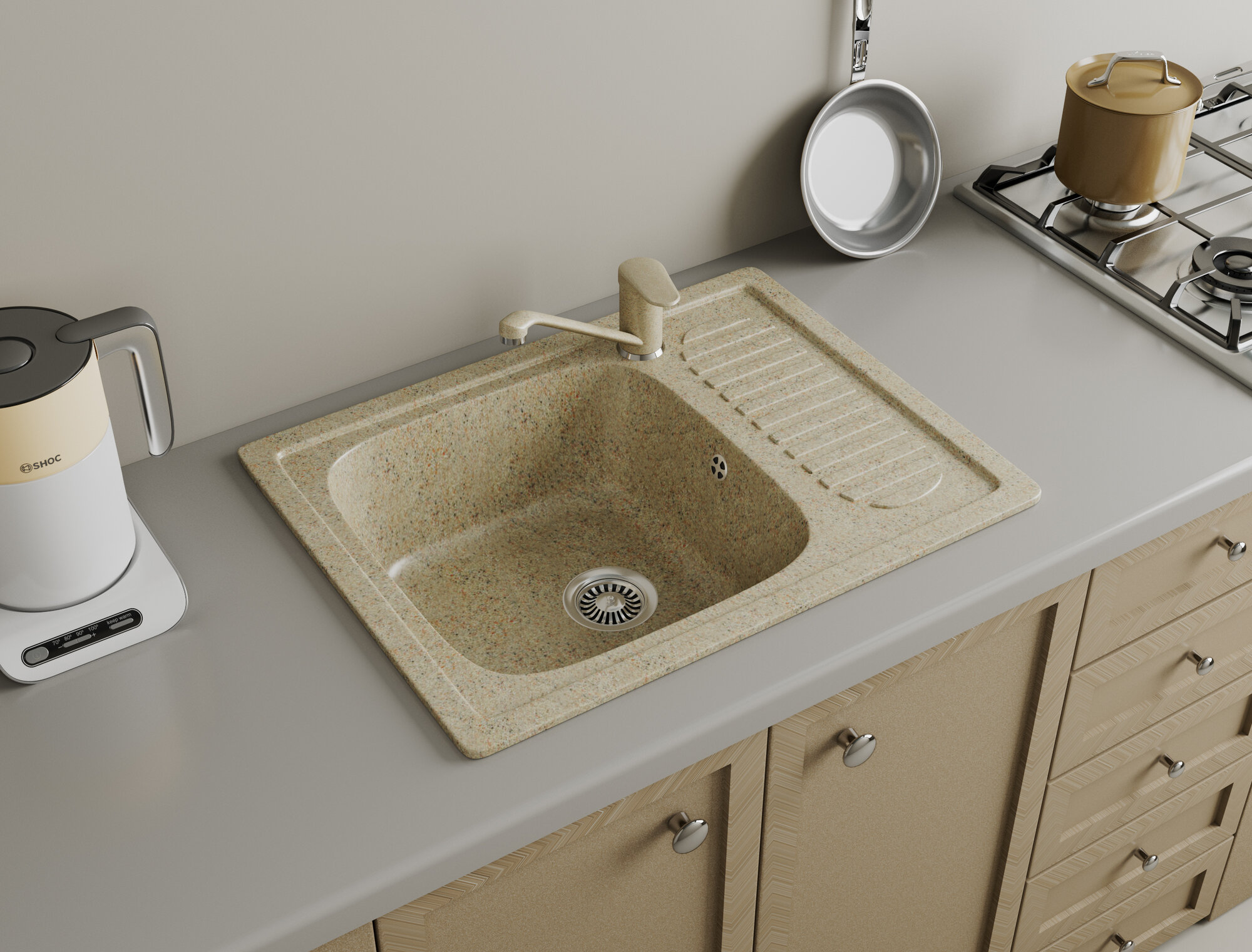 Мойка для кухни GreenStone GRS-18L-328, врезная, 770 x 500 мм, бежевая