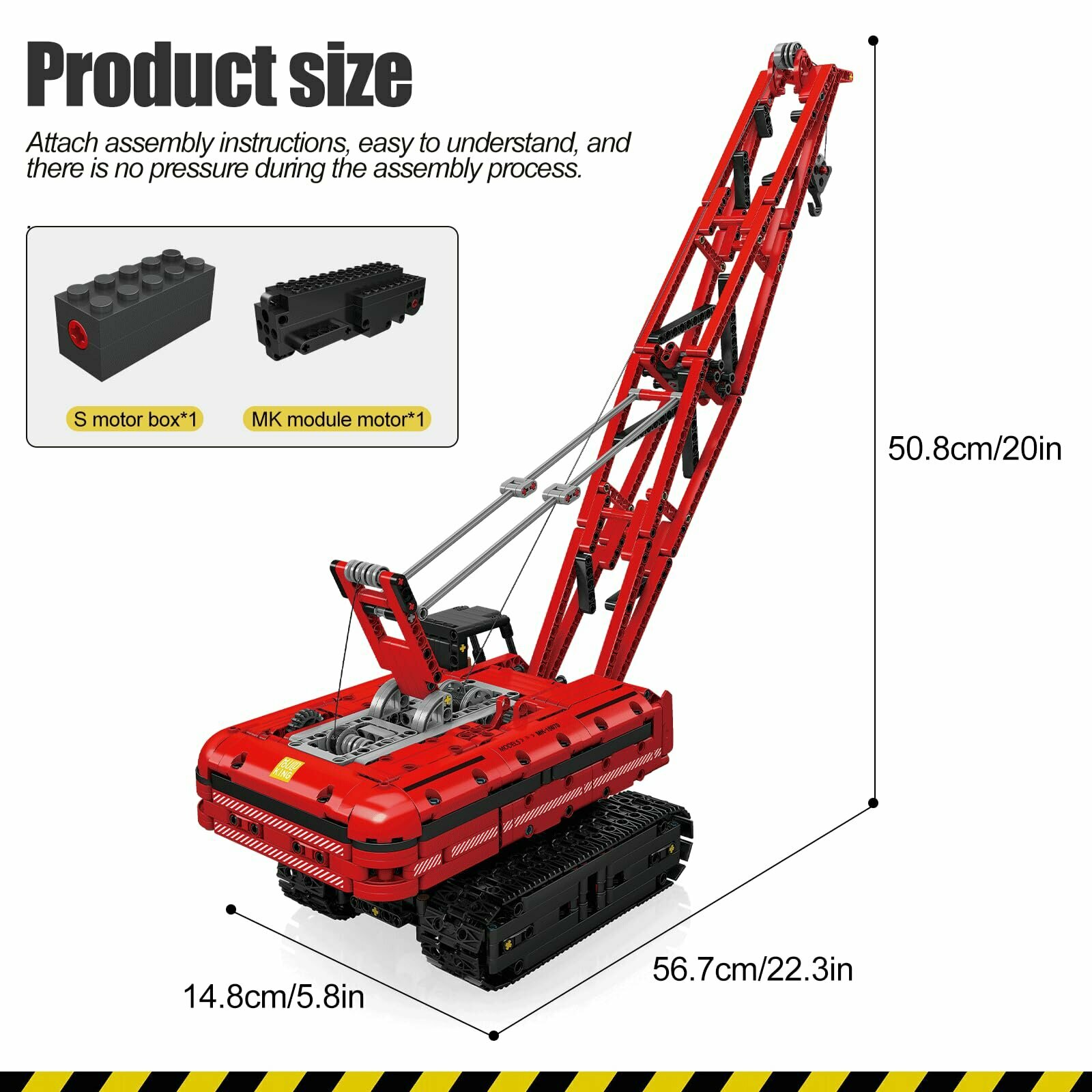 Конструктор Mould King 15070 Мобильный гусеничный кран, 1292 дет., Игрушки для машиностроения, с ДУ, красный