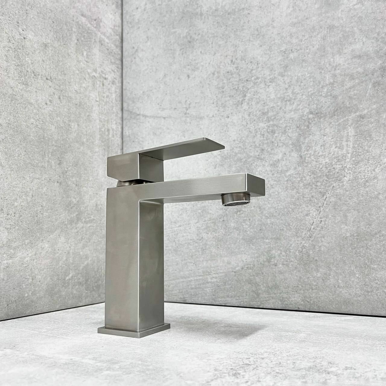 Смеситель для раковины с монолитным изливом (нержавеющая сталь) HAIBA HB10803-2