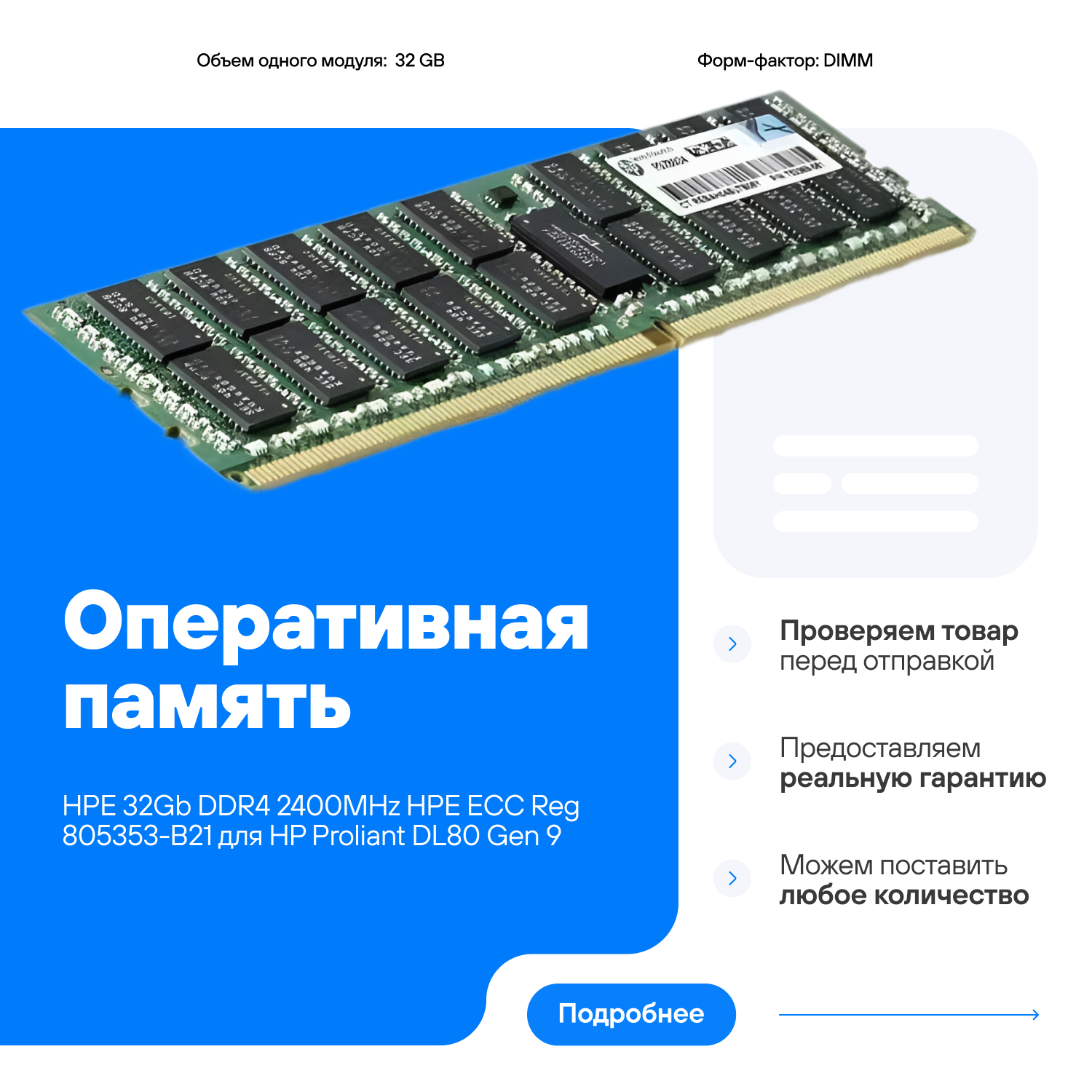 | Объем одного модуля | 32 Гб |