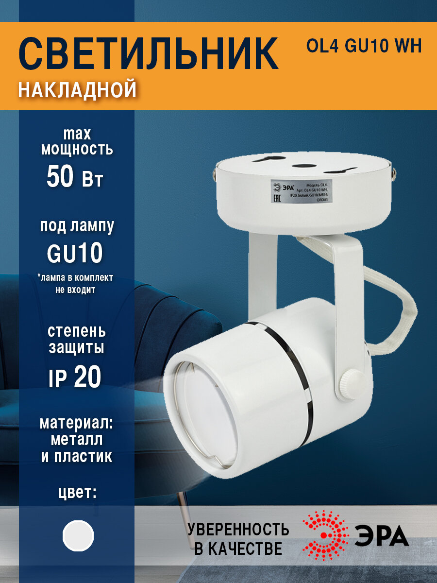 OL4 GU10 WH Подсветка ЭРА Накладной, белый