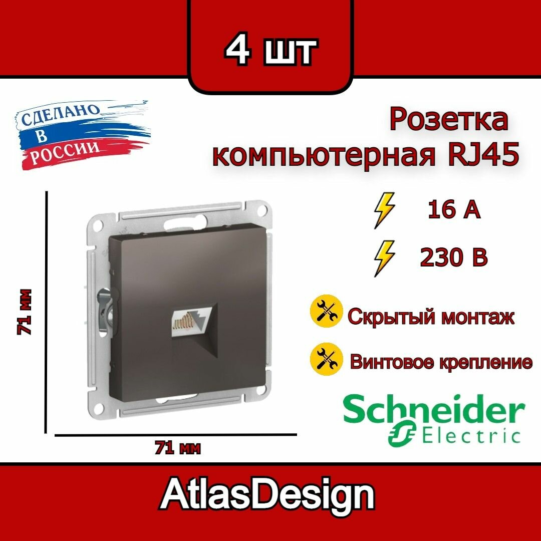 Купить Розетка компьютерная RJ45, мокко, Schneider Electric AtlasDesign (комплект 4шт)