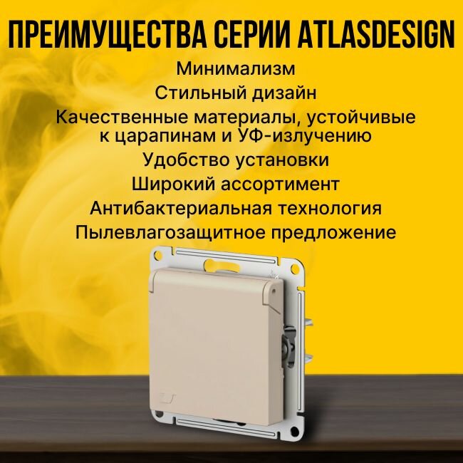 Механизм розетки с з/к со шт. с крышкой IP20 бежевый AtlasDesign (15) Schneider Electric