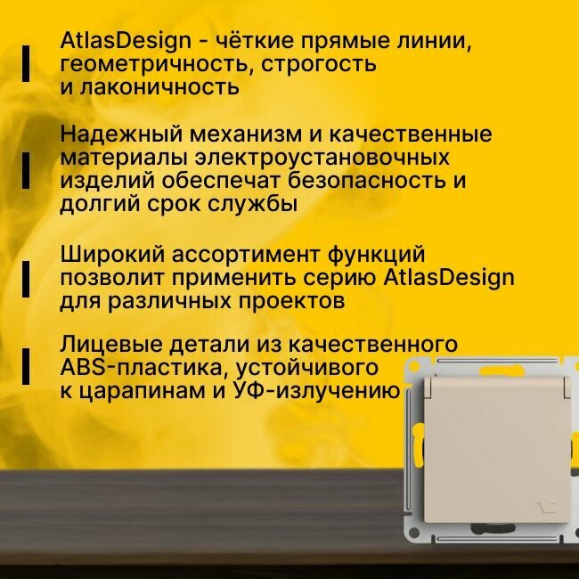 Купить Розетка AtlasDesign 16А IP20 с заземл. со шторками с крышкой механизм песочн. | код.ATN001246 | Systeme Electric (4шт.в упак.)
