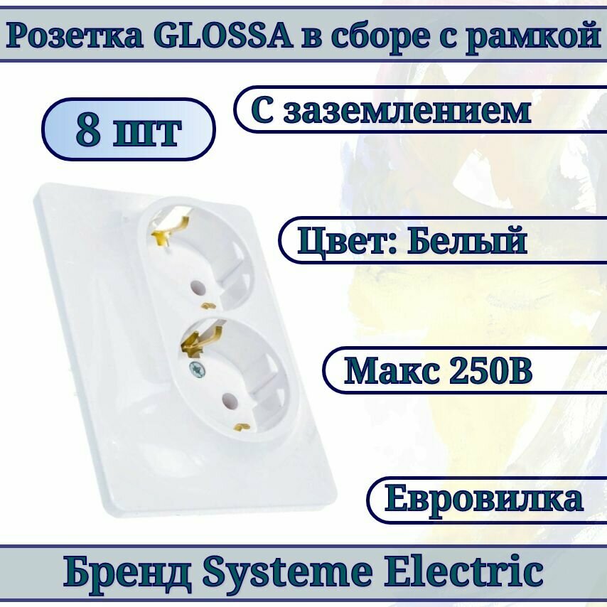 СохранитьКомплект 8 штук, Розетка 2-я с/з в сборе SE Glossa Белый GSL000124 интересное: