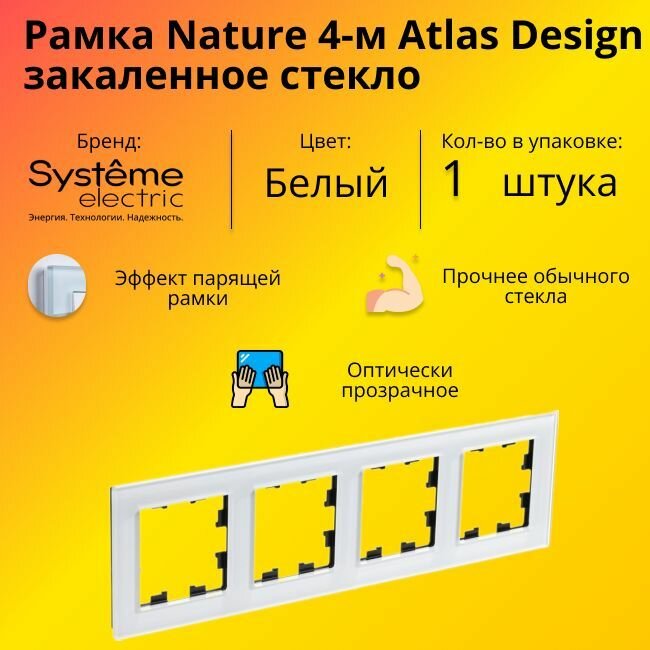 Купить Рамка 4гн стекло белый AtlasDesign Nature Schneider Electric