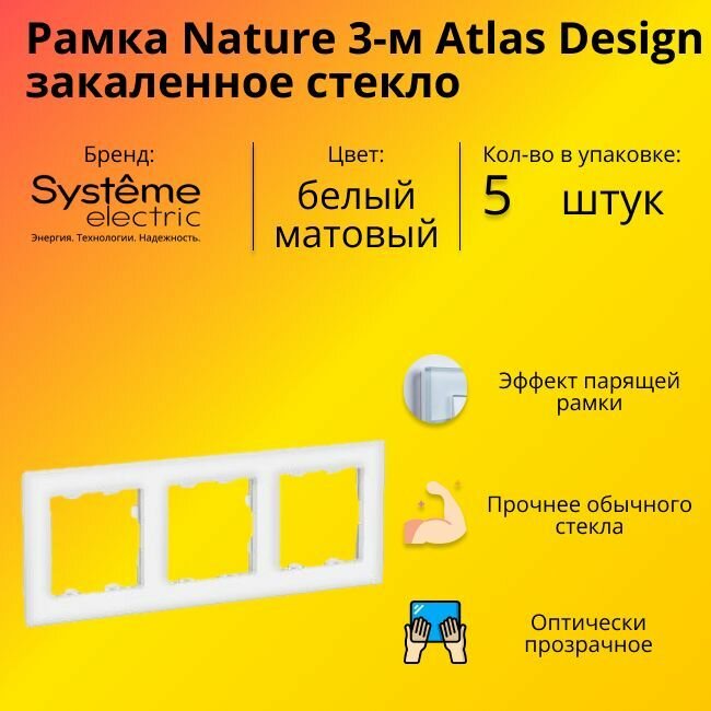 Купить Рамка тройная для розеток и выключателей Systeme Electric Atlas Design Nature закаленное стекло белый матовый ATN330103 - 5 шт.