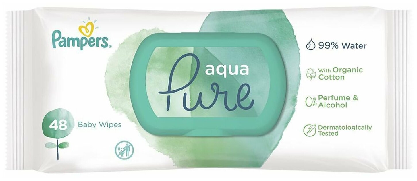 Влажные салфетки Pampers Aqua Pure, пластиковая крышка, 48 шт.