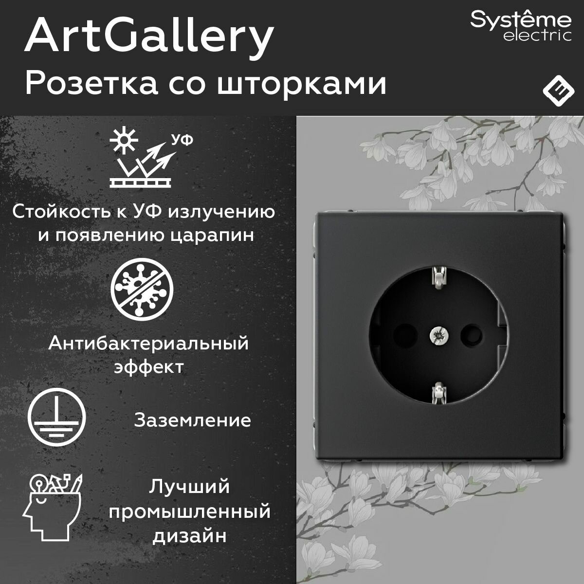 СохранитьРозетка с заземлением Systeme Electric ArtGallery, с защитными шторками, на винтах, карбон интересное: