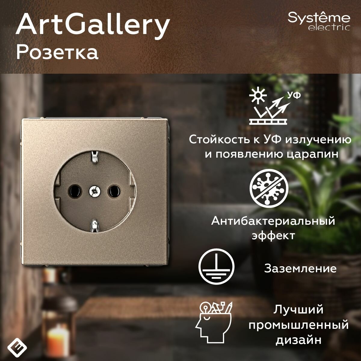 СохранитьРозетка с заземлением, 16А, механизм, цвет Шампань Systeme Electric ArtGallery интересное: