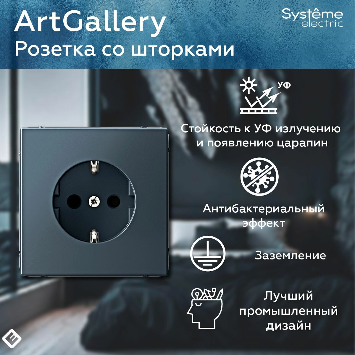 СохранитьРозетка с заземлением, со шторками, 16А ARTGALLERY, механизм, цвет грифель, GAL000745 интересное: