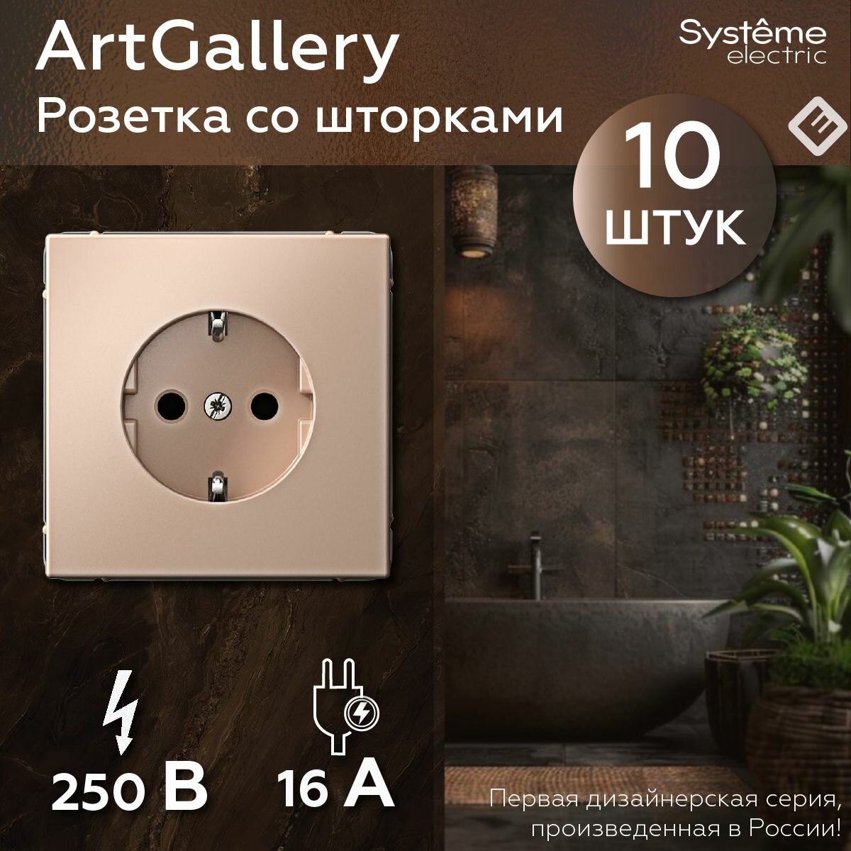10 шт. Systeme Electric ArtGallery Мокко Розетка с заземлением, 16А, 10шт.