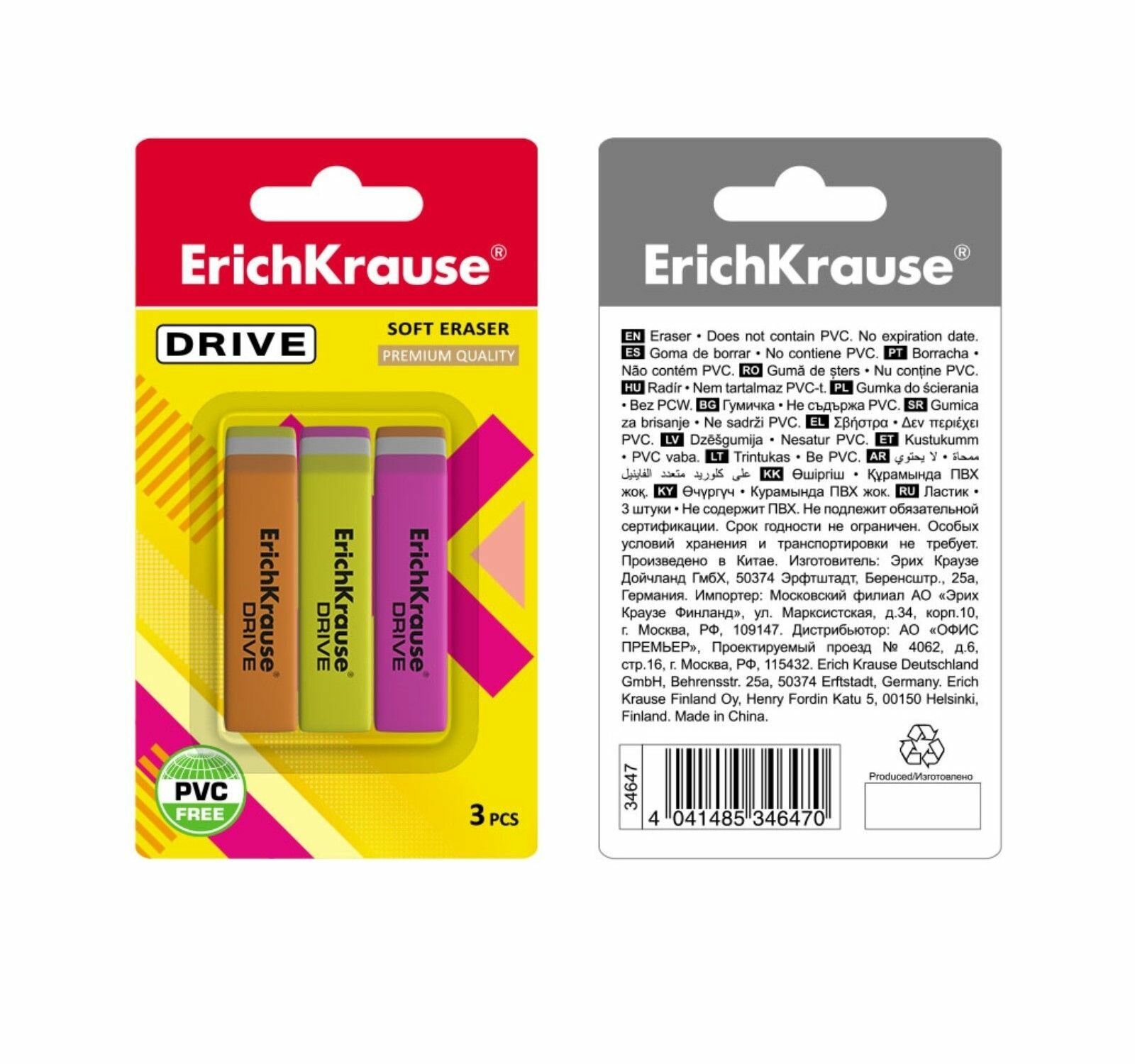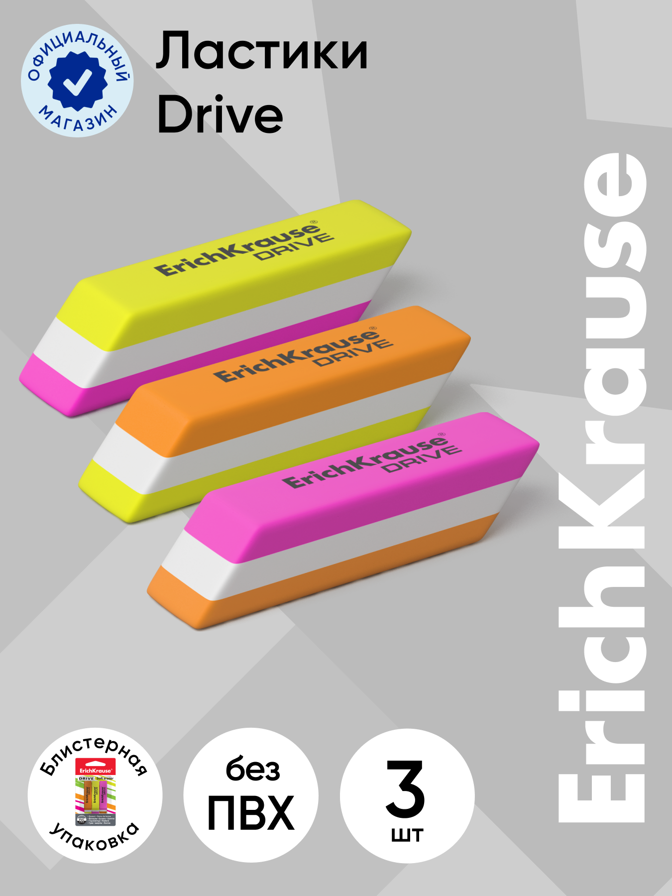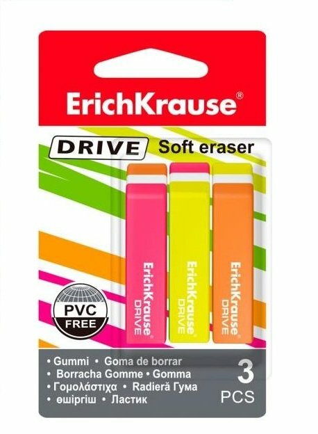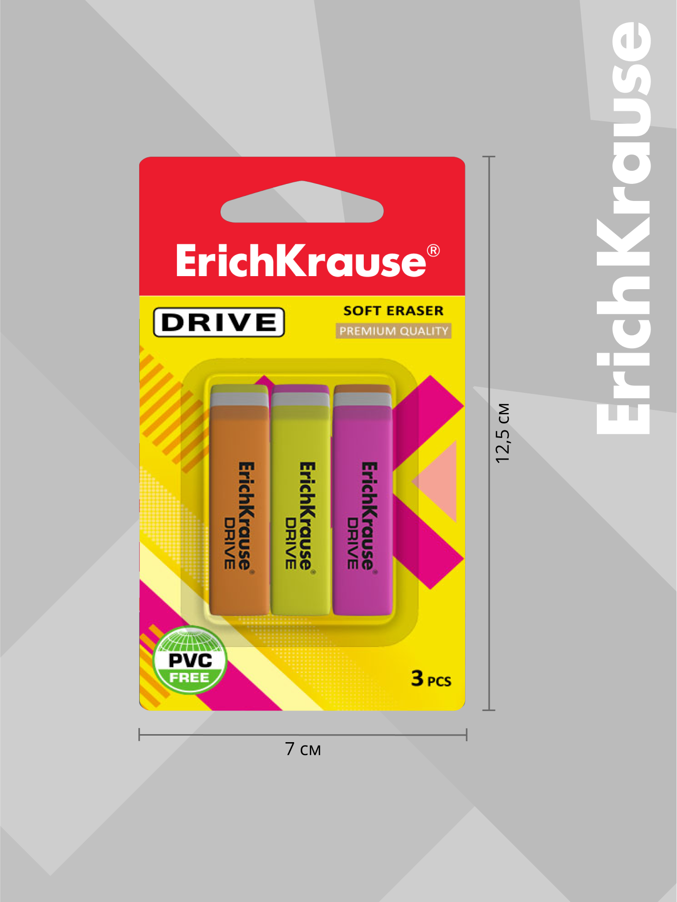 Купить Ластик ErichKrause® Drive (в блистере по 3 шт.)
