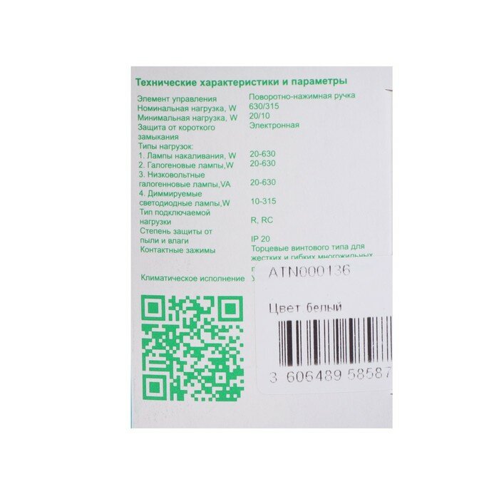 Schneider Electric AtlasDesign Светорегулятор (диммер) поворотно-нажимной, LED, RC, 400Вт, Белый Арт. ATN000123