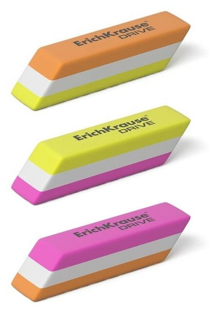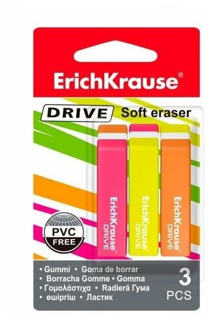 Купить Набор ластиков 3 штуки ErichKrause Drive, 57 х 15 х 13 мм, мягкие, гипоаллергенные, прямоугольные, в .