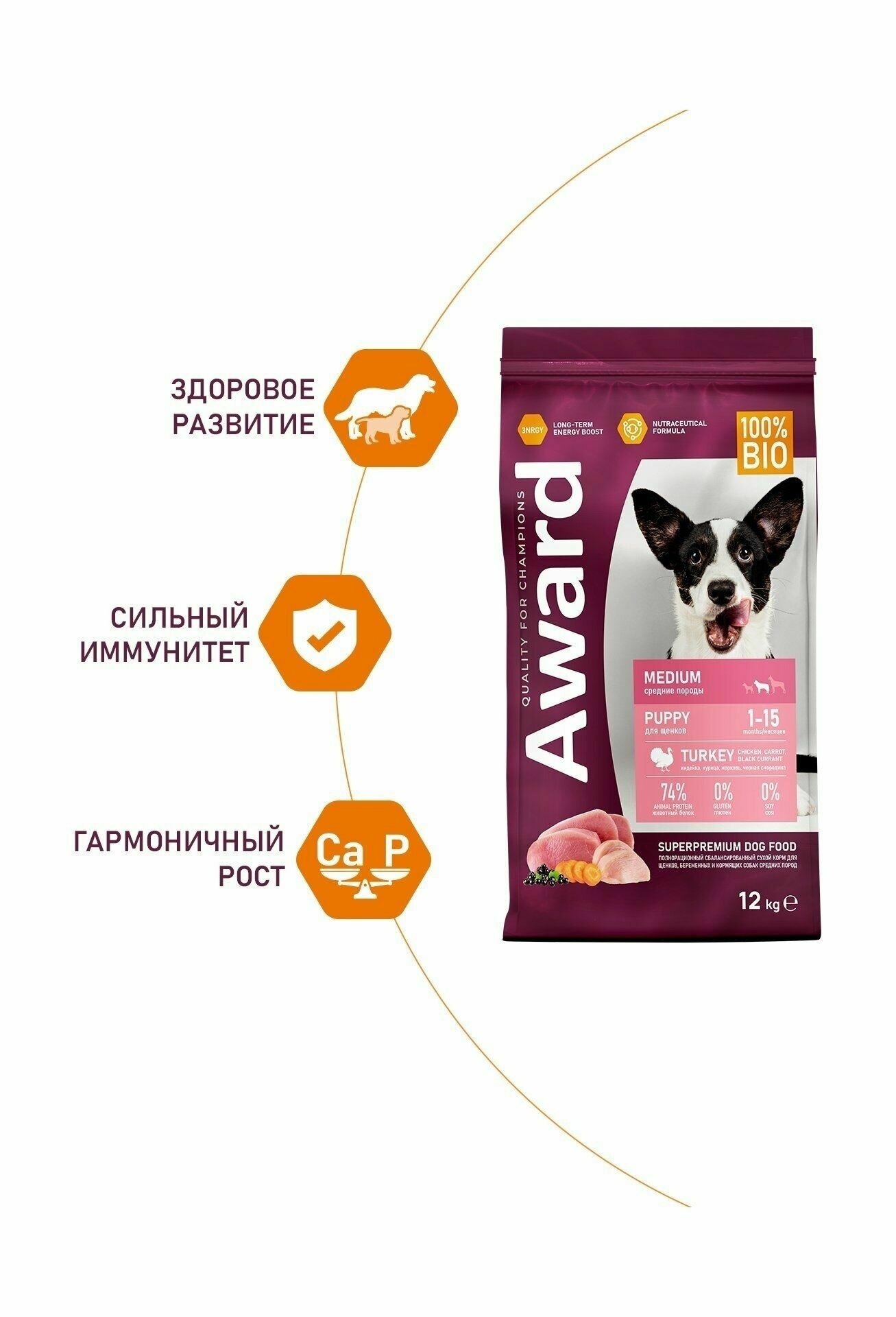 AWARD MEDIUM PUPPY для щенков, беременных и кормящих сук средних пород с индейкой и курицей 12 кг