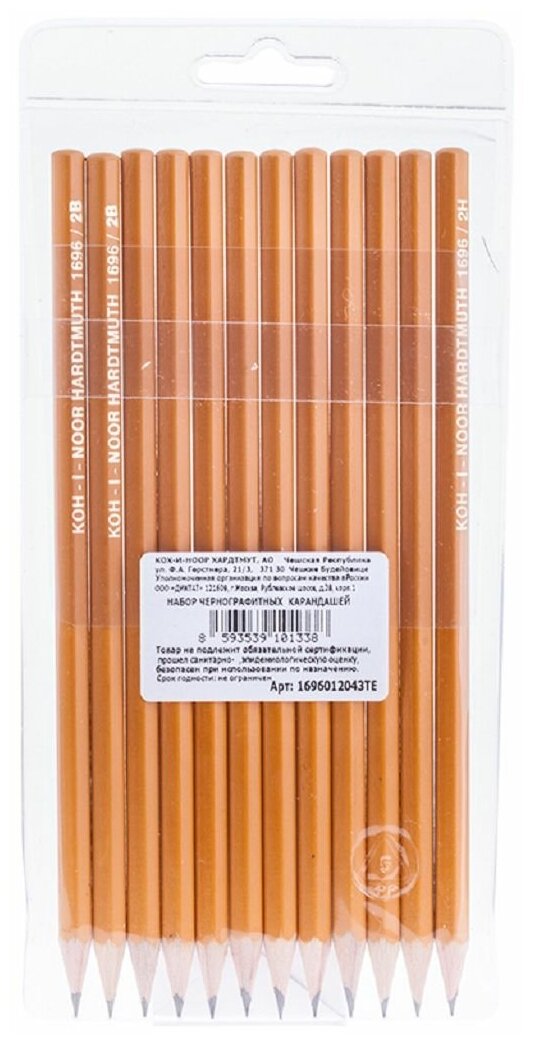 Карандаши чернографитные набор 12 шт. 2B-2H KOH-I-NOOR "1696", 1696/12, 1696012043TE В комплекте: 1шт.