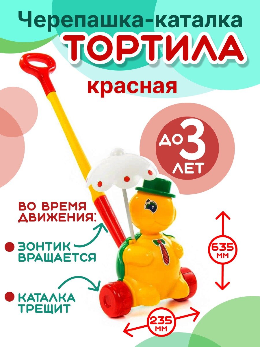 Ниже Вы можете прочитать отзывы на Каталка 'Черепашка Тортила' с ручкой, ознакомится с подробными характеристиками, посмотреть интересные обзоры и фотографии на Каталка 'Черепашка Тортила' с ручкой.