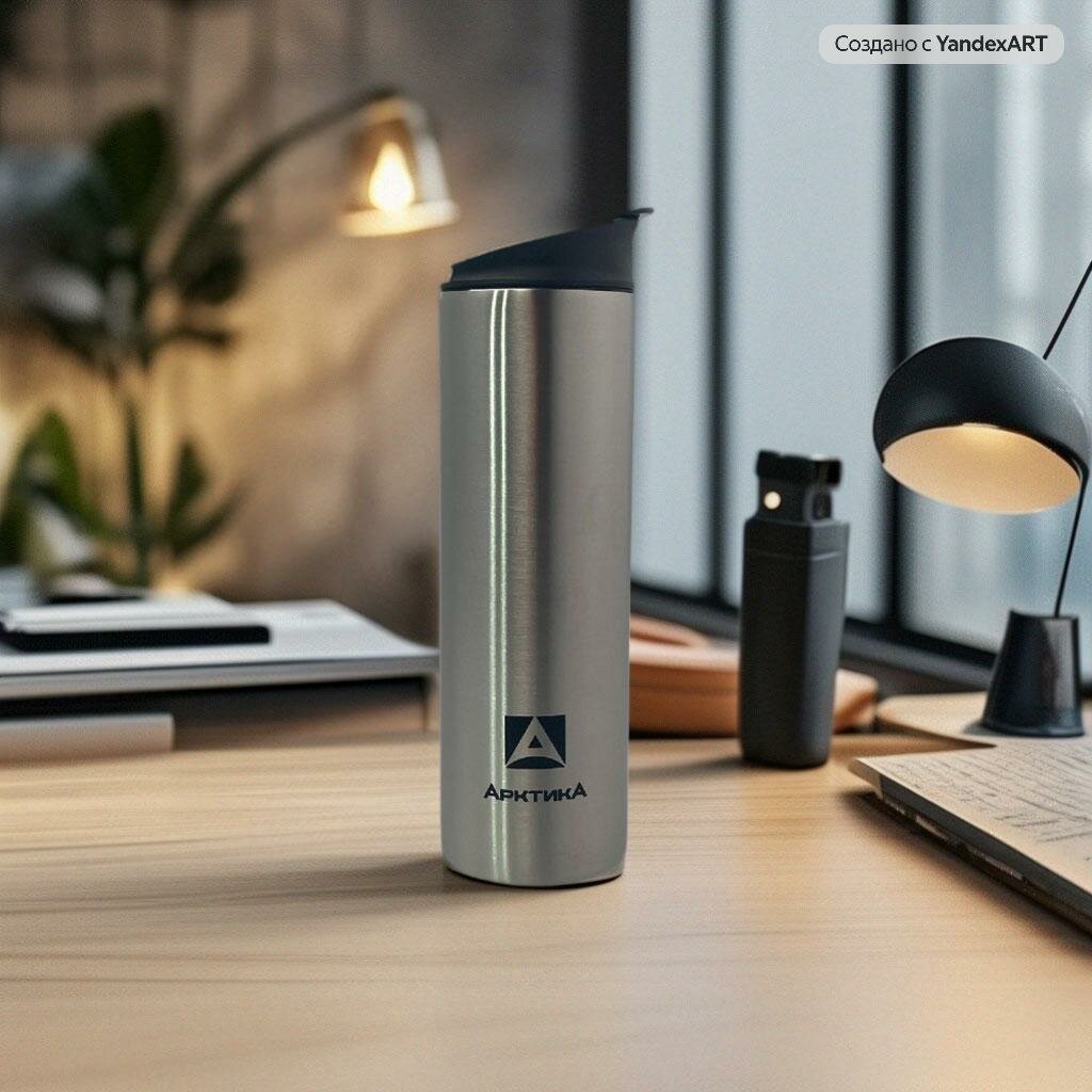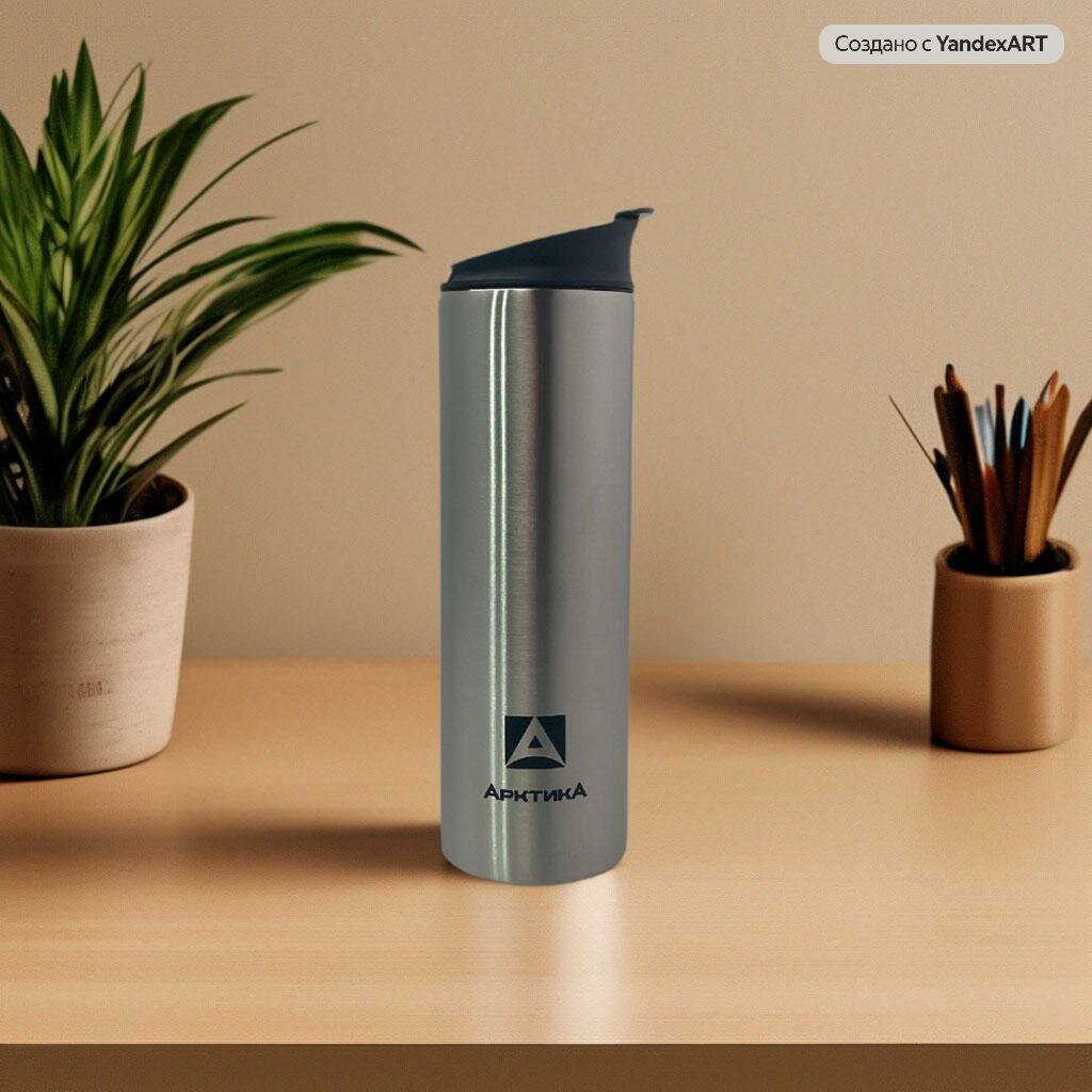 Термокружка для чая и кофе Арктика 710-480 серебристый 0.48 литров легкий термостакан для напитков с крышкой-замком