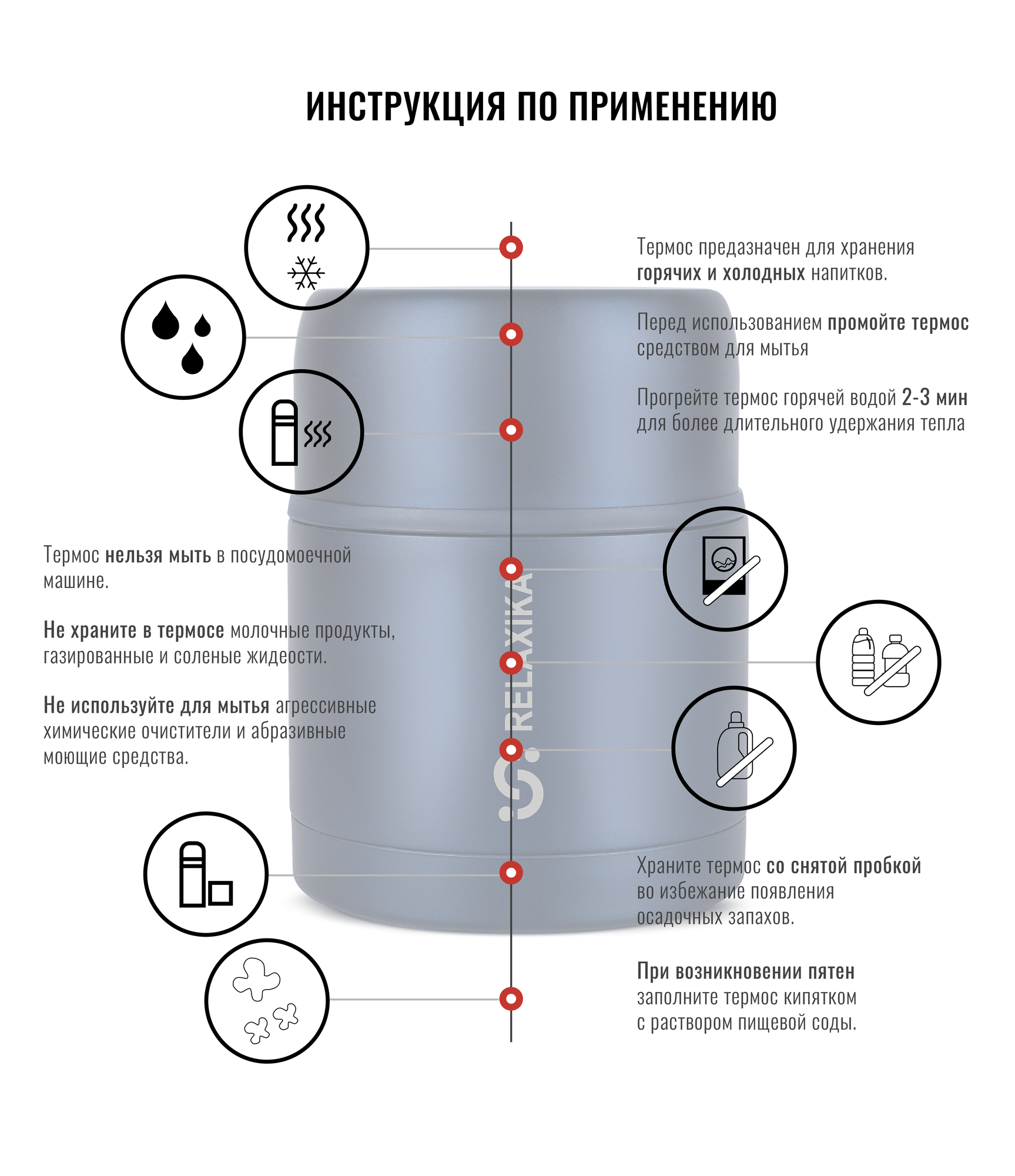 Термос для еды Relaxika R301.700.1 700мл, нержавеющая сталь