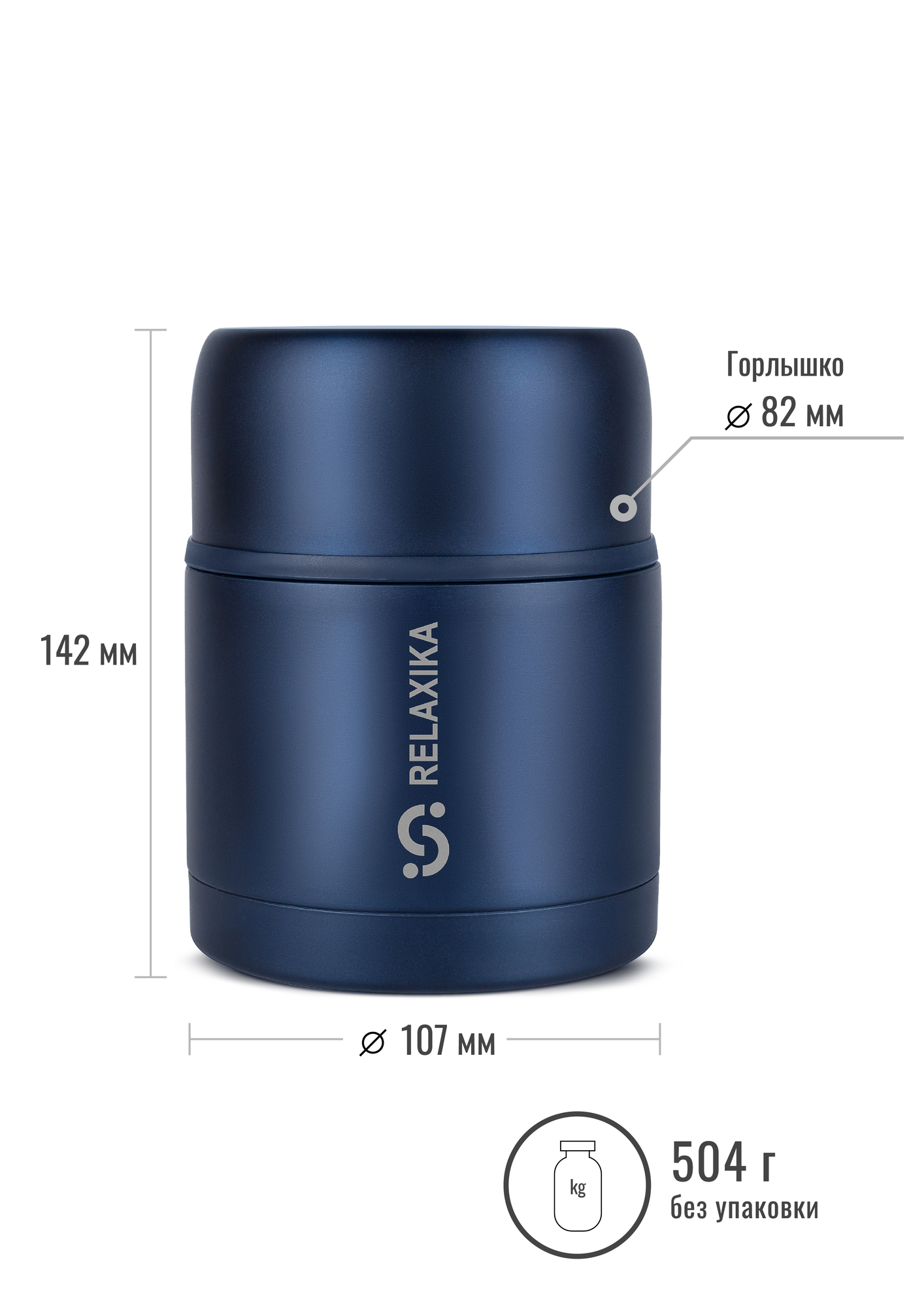 Термос Релаксика Relaxika с широким горлом для еды (0,5 литра), темно-синий, R301.500.3