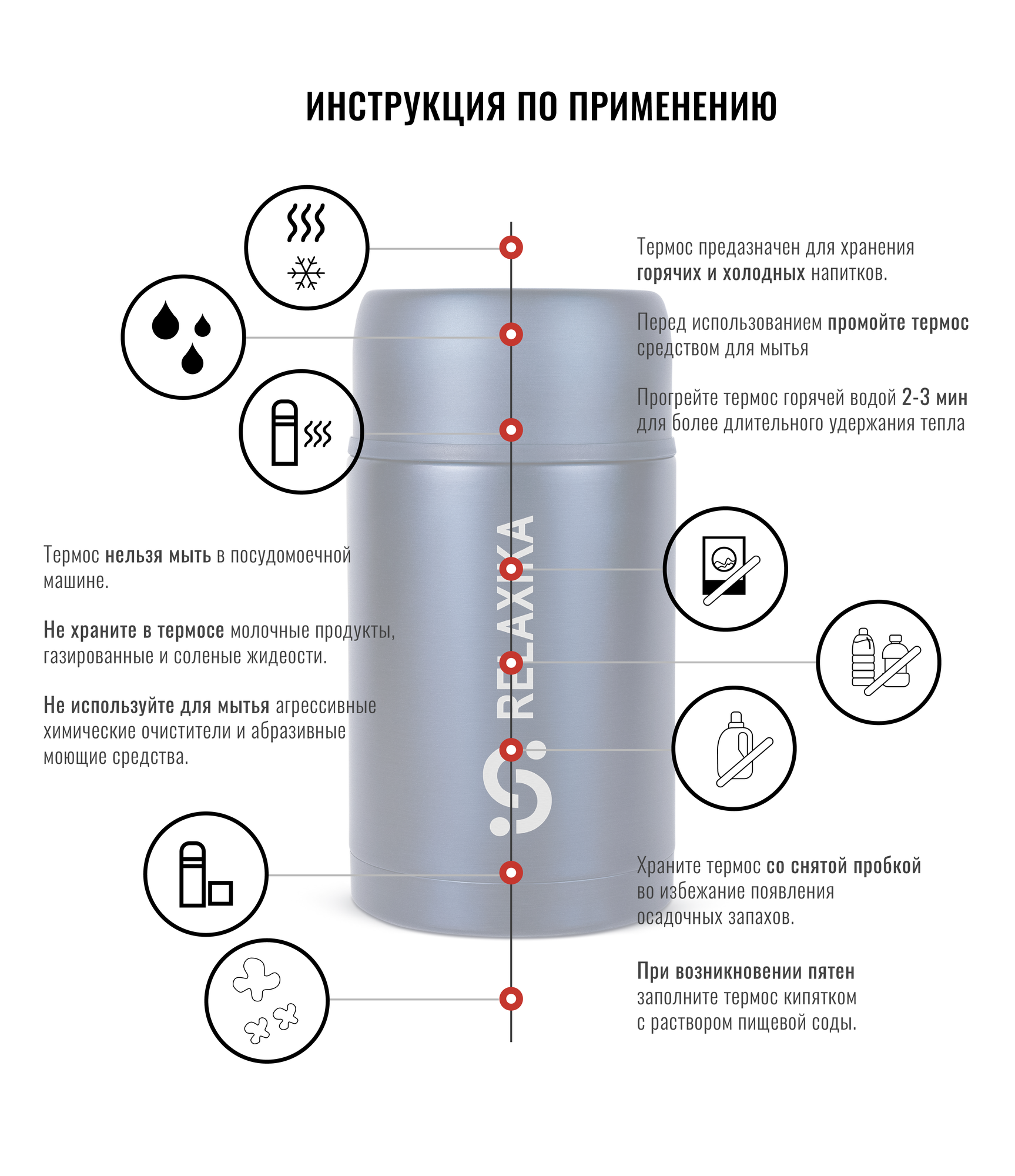 Термос для еды Relaxika R301.1000.2 1000мл, нержавеющая сталь