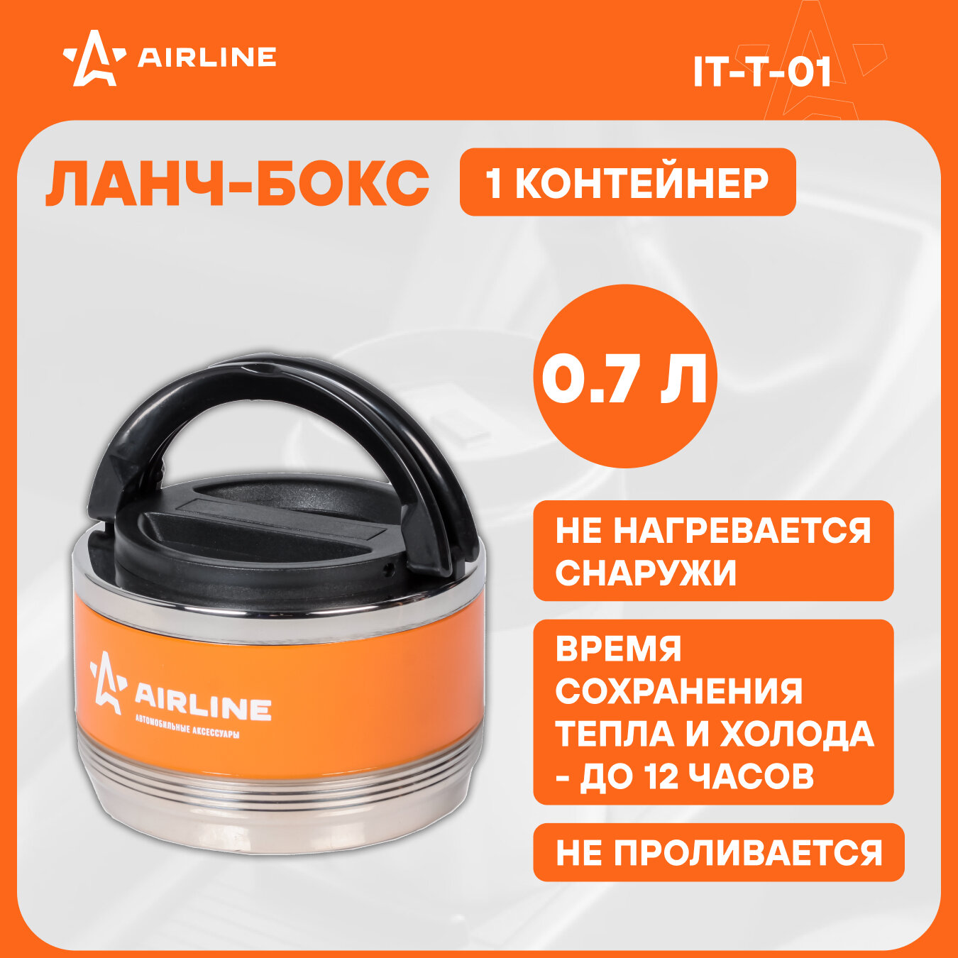 Термос для еды AIRLINE IT-T-01, 0.7 л, оранжевый/черный