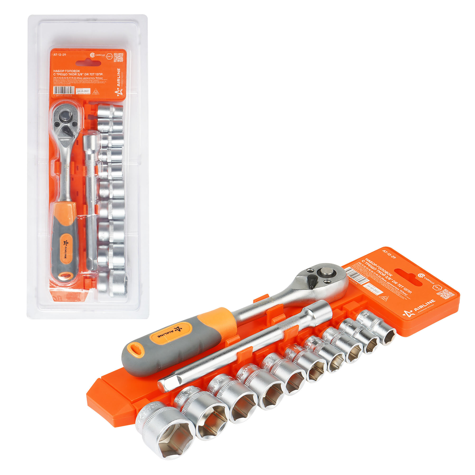 AT1229 AIRLINE Набор головок с трещоткой 3/8 DR 72Т 12пр. (10,11,12,13,14,15,17,19,22,24мм, удлинитель 150мм) (AT-