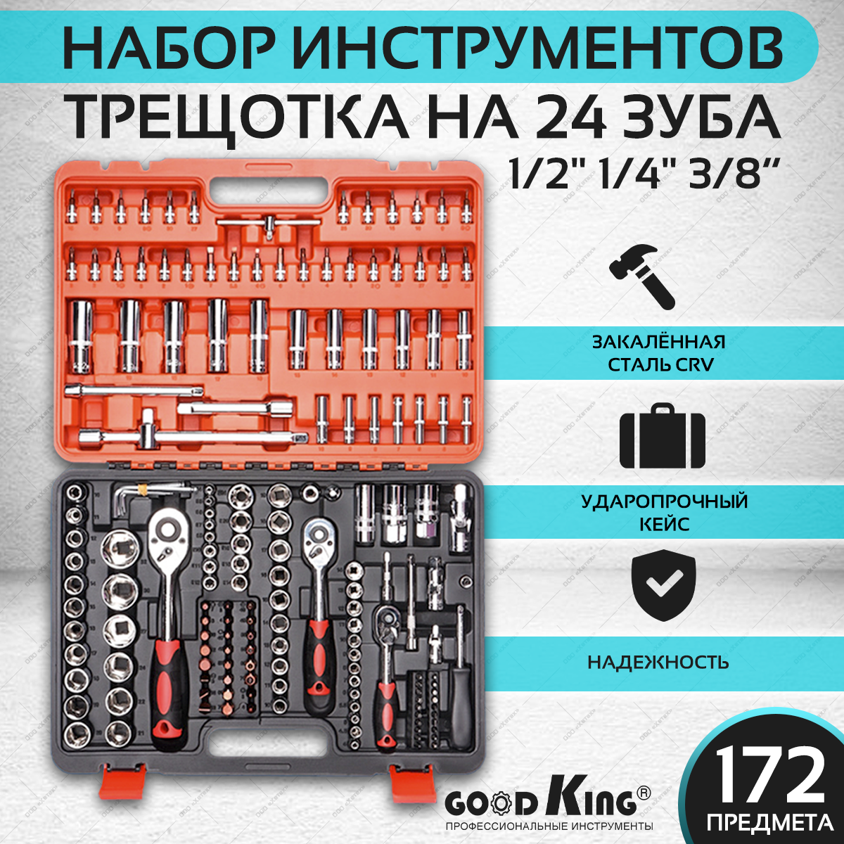 Набор инструментов 172 предмета 1/4" 3/8" 1/2" трещотка 24 зуба GOODKING K-10172 Набор инструментов для авто, для дома