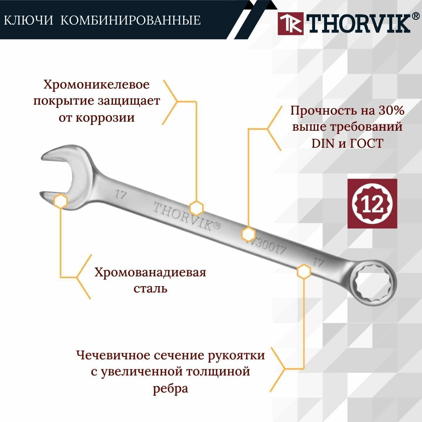 Набор ключей комбинированных 8-17 мм W3S6PR Thorvik, 52611