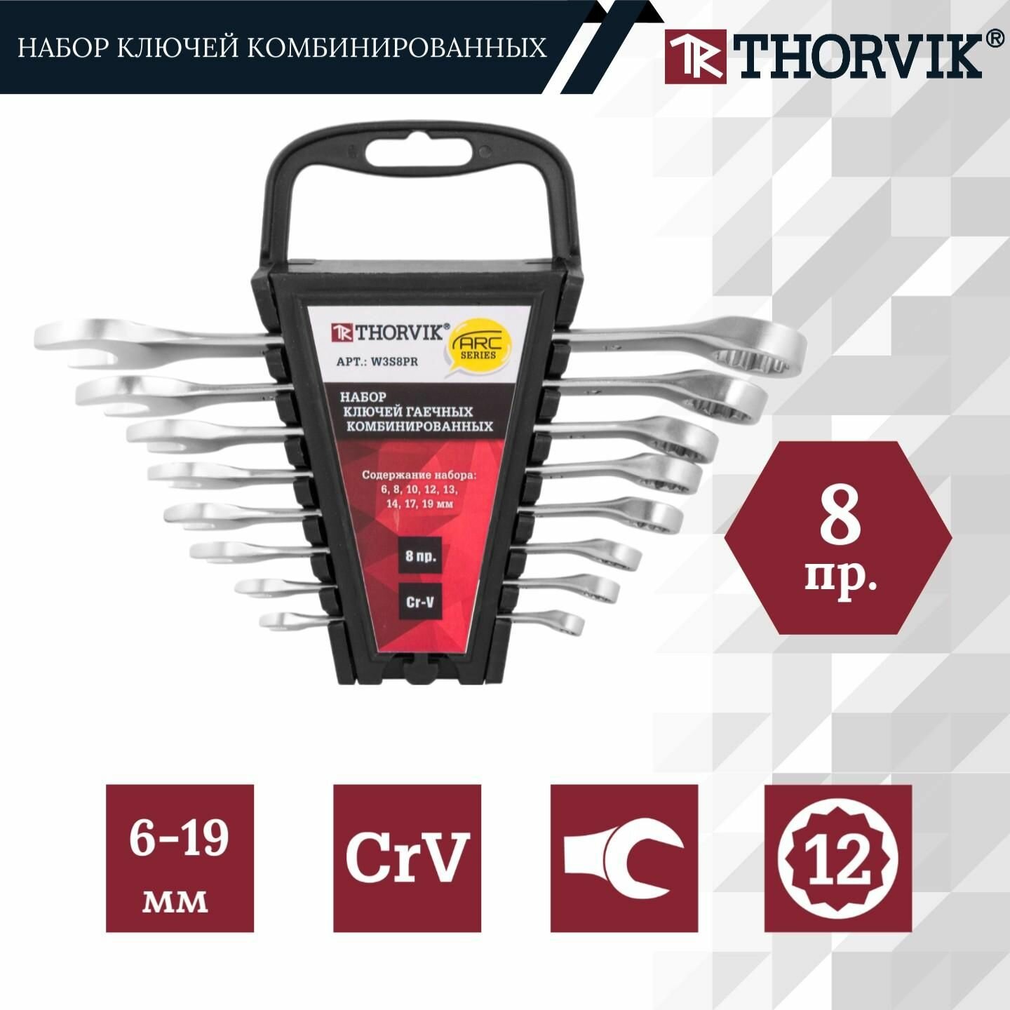 THORVIK W3S8PR Набор ключей комбинированных серии ARC на держателе, 6-19 мм, 8 предметов W3S8PR THORVIK