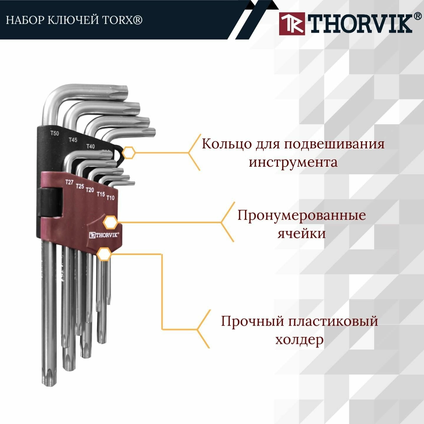 THORVIK TK9S Набор ключей торцевых TORX®, Т10-T50, 9 предметов